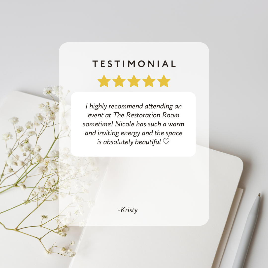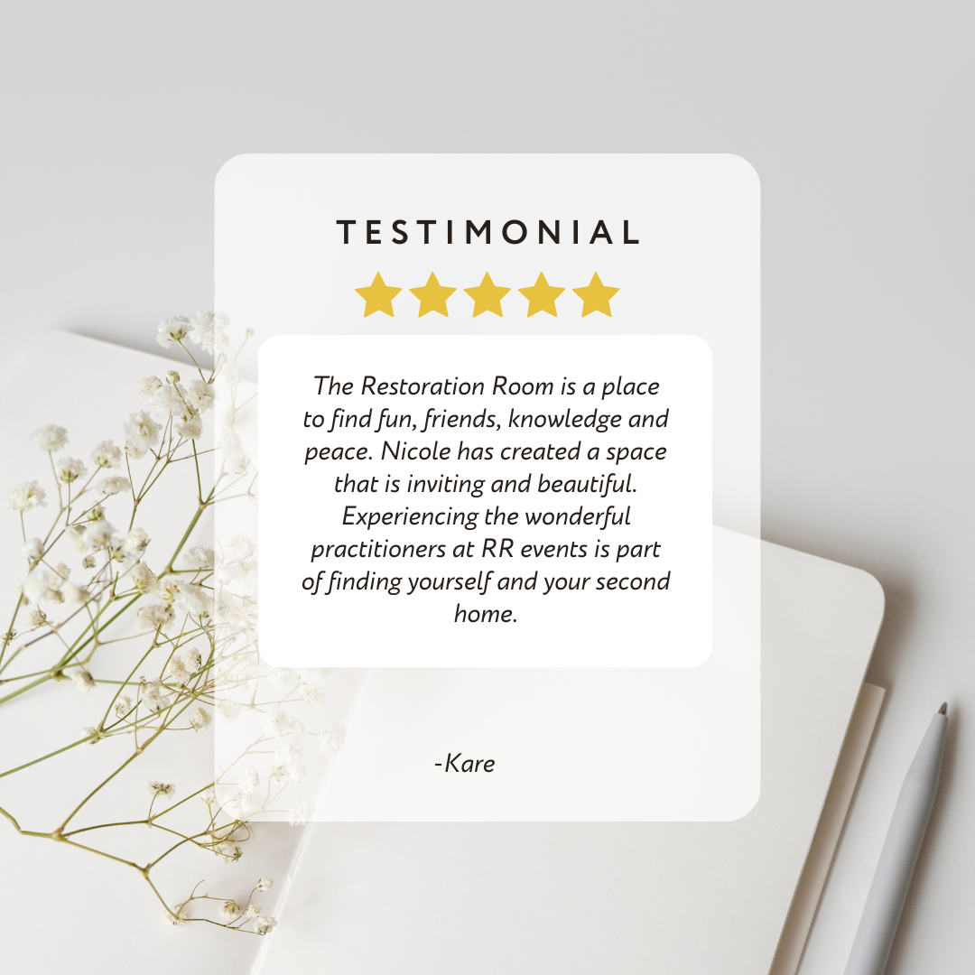Rooted in connection, compassion, and possibility, Restoration Room is an inviting, comforting space designed to uplift, inspire, and cultivate a high-vibration sense of belonging.